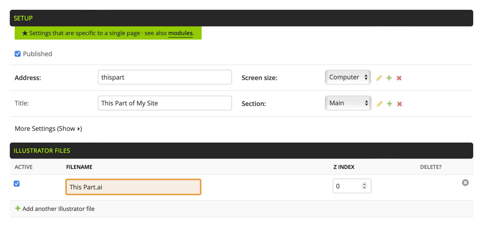 - click Add another Illustrator file, then paste the Illustrator file name into the orange rectangle