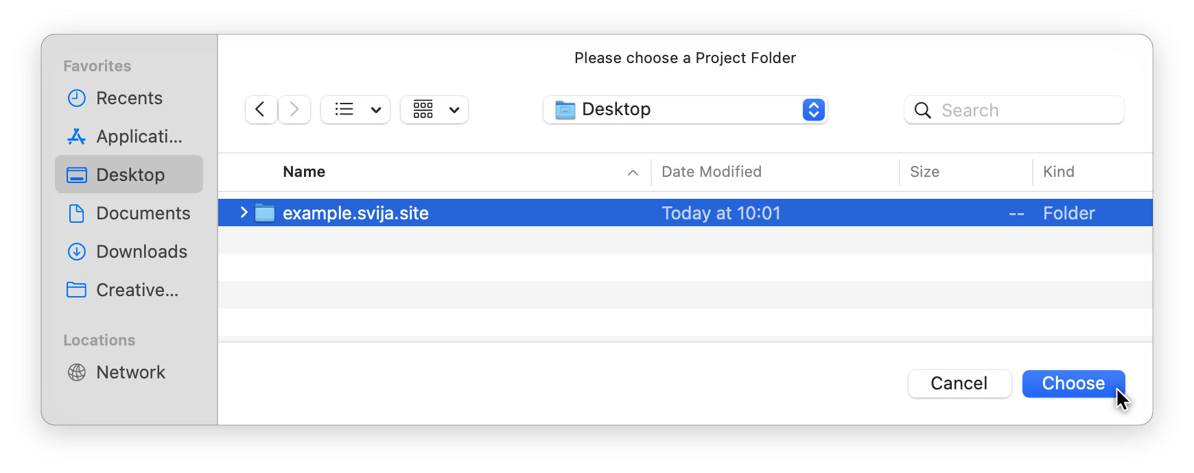 Choosing a Project Folder