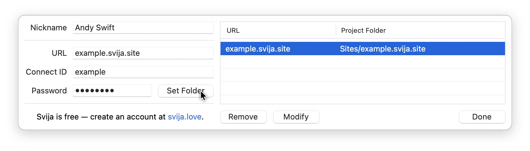 When you add or modify a website, you will be asked to choose a project folder.